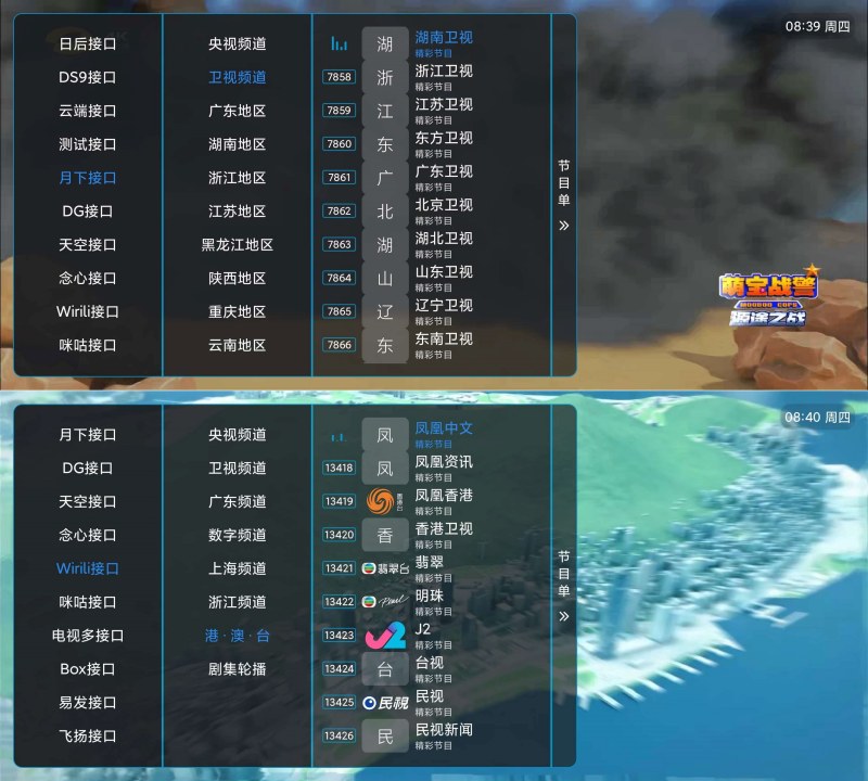 内置多线接口;在设置菜单"列表配置"-"列表订阅"中手动选择加载接口线路